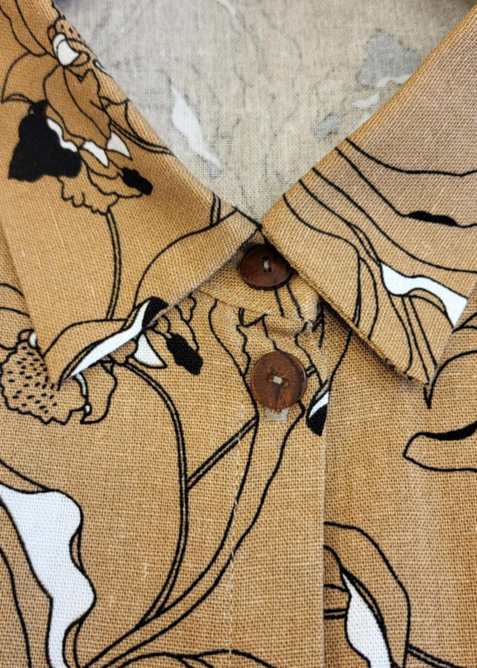 Step into effortless style with our Floral Breeze Linen Kimono Shirt. Featuring a relaxed, oversized silhouette and wide kimono-style sleeves, this piece is crafted from breathable linen for all-day comfort. The warm tan backdrop is brought to life with an elegant floral and abstract motif, adding a touch of playful sophistication.